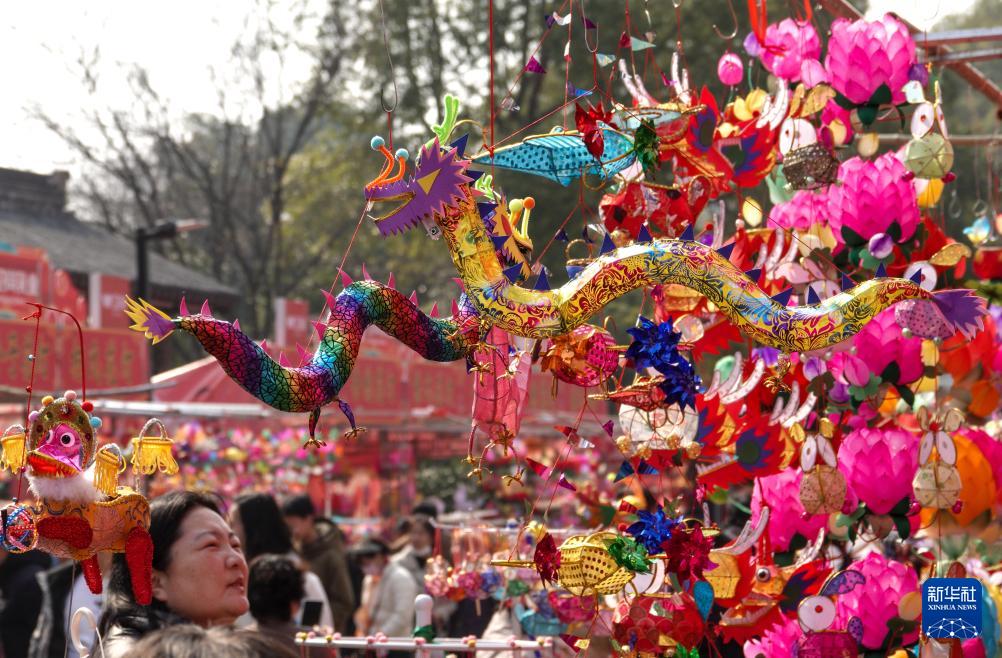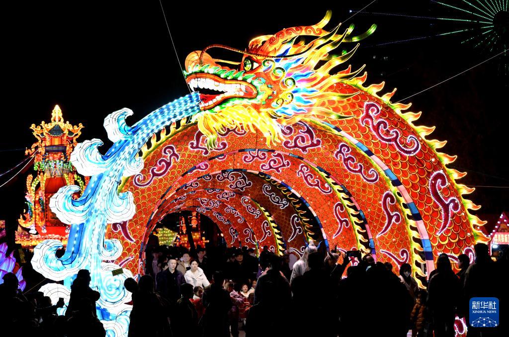 河南省洛陽市の王城公園で撮影された龍の飾り燈ろう。新華社記者?朱祥撮影