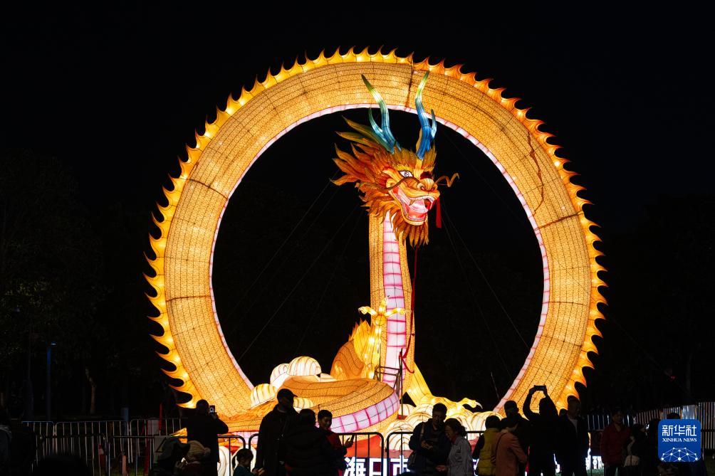 海口市の萬緑園萬春會で撮影された、龍の飾り燈ろう。新華社記者?蒲暁旭撮影