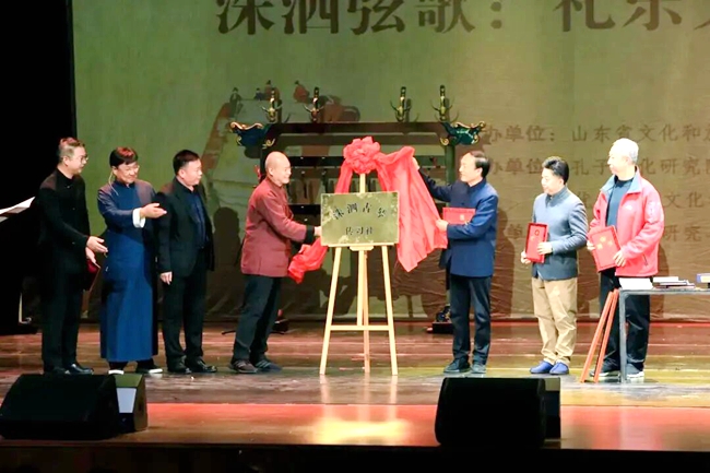 在接下來舉行的“古琴傳習儀式”上,汶水書院院長劉強先生首先展示了數件珍貴的齊魯禮樂文獻,隨后袁梅鄭重宣告“洙泗古琴傳習社”成立。宋立林教授代表禮樂文化研究與推廣中心為非遺研究專家郭學東、廣陵與諸城兩派傳人茅毅、制琴名家楊景河、劉強院長及制琴名師劉琪等五位琴壇名家頒發聘書。諸位先生與曲阜市新華書店副經理馬祥濤先生共同為“洙泗古琴傳習社”揭牌,標志著這一融合文獻研究、琴藝傳習與制作技藝傳承諸種功能于一體的古琴傳承新平臺正式啟航。
