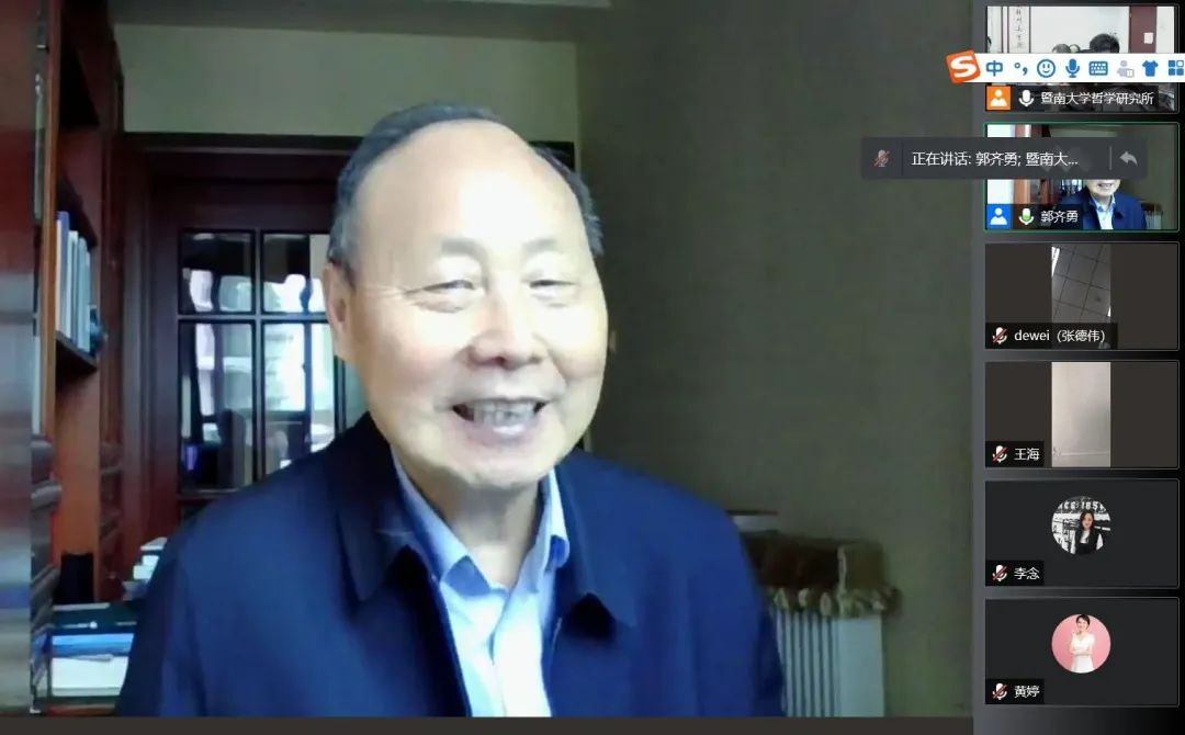 4月14日,郭齊勇應(yīng)邀出席在線講座,講述中國(guó)哲學(xué)史百年回顧與當(dāng)代發(fā)展(李念截屏)