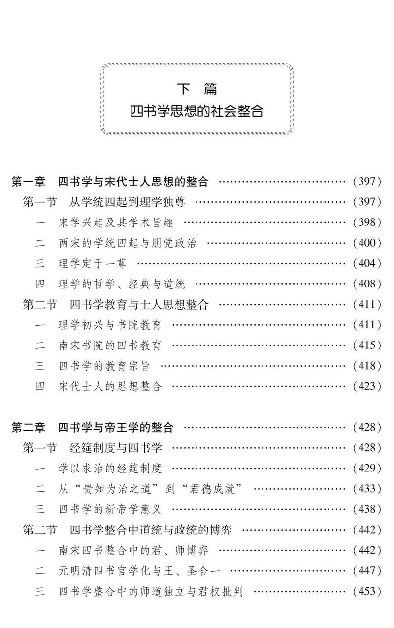 本書以宋學的經典轉型為視角,探討唐宋社會變革引發的中國思想史發展,重點關注宋儒對中國思想傳統的重建和整合。分為上、中、下三篇,上篇追溯“四書”的早期學術形態,即作為儒家諸子、六經傳記的思想特點;中篇通過唐宋之際的社會變革和思想變革,考察宋儒如何將“四書”原有的核心思想做出新的思想詮釋,重建了兩宋以后的中國思想傳統;下篇研究宋代儒家士大夫如何推動宋學化四書學的思想整合,使其成為士大夫、帝王、民眾的思想共識。