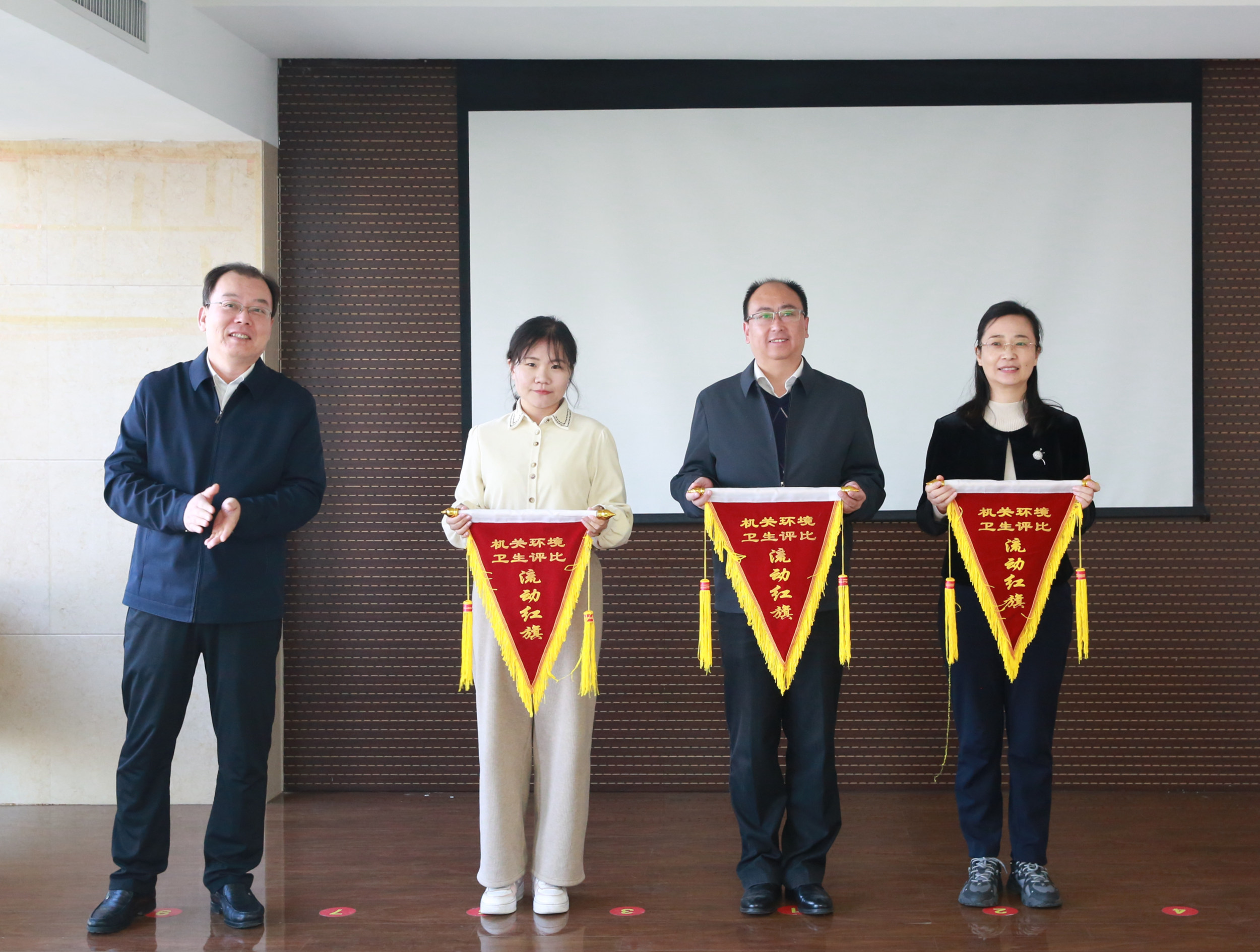 為助力機關精神文明建設,營造干凈整潔的辦公環境,提升干部職工精神面貌和文明素養,儒學中心(基金會秘書處)機關黨委組織開展了衛生評比活動。此次活動,得到了全體干部職工的積極參與。經評比,傳播普及部、組織人事部、孔子網在此次評比活動中榮獲前三名,米懷勇為獲獎黨支部頒發流動紅旗并講話。