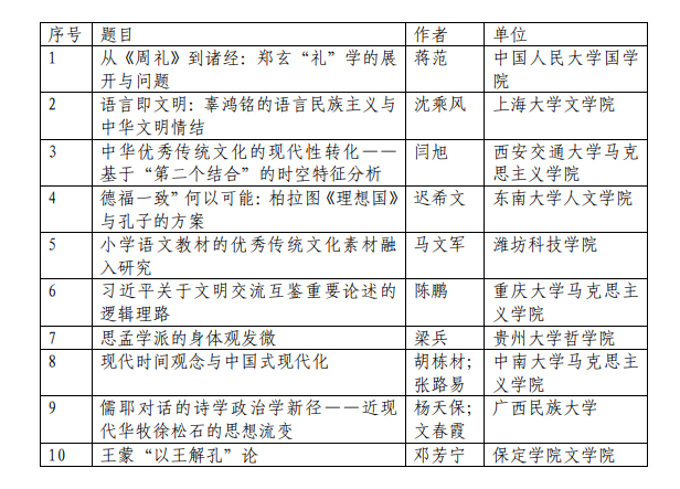 “文化傳承發(fā)展與建設(shè)中華民族現(xiàn)代文明”學(xué)術(shù)研討會(huì)暨第十屆全國儒學(xué)社團(tuán)聯(lián)席會(huì)議青年學(xué)者征文 活動(dòng)評(píng)審結(jié)果公示