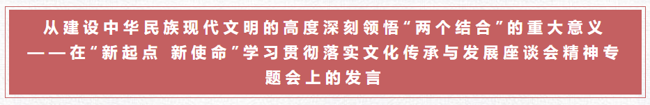 二是這次講話的重點。總書記這次講話突出強調了要深刻理解“兩個結合”的重大意義。“兩個結合”的重大意義是相對于什么講的呢?它是相對于“建設中華民族現代文明”的重要意義,而不是僅僅講“兩個結合”對文化建設的意義。關于這一點,總書記講話的內容非常寬廣,很多地方跟建設中國特色社會主義是重合的。應該說中華文明這個“文明”也不是白用的,包括它的政治意義、經濟意義等,是更為寬廣的。講話圍繞建設中華民族現代文明這一體系,分析了中華文明的突出特性,重點指出建設中華民族現代文明怎么貫徹“兩個結合”,“兩個結合”對于建設中華民族現代文明的意義。最后提出要更好擔負起新的文化使命,講文化建設的一些具體做法。“兩個結合”在這里不是平列的,真正要講的是突出第二個結合。不是說第一個結合不重要,但第一個結合已講了八十年,從三十年代就開始了。這里突出講第二個結合,講它對建設中華民族現代文明的重要意義。