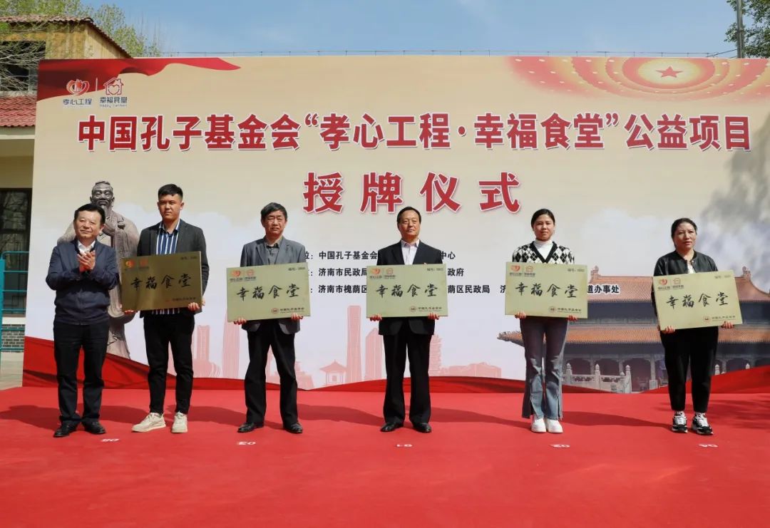 3月31日,中國孔子基金會“孝心工程·幸福食堂”公益項目落戶濟南槐蔭區新龐村、范莊村等5座村莊。山東省人大常委會原黨組書記、副主任,中國孔子基金會理事長于曉明為幸福食堂授牌,項目既是為了解決老年人的就餐問題,更是為鄰里搭建守望相助的平臺,讓更多老年人過上老有所養、老有所依、老有所樂、老有所安的幸福生活。