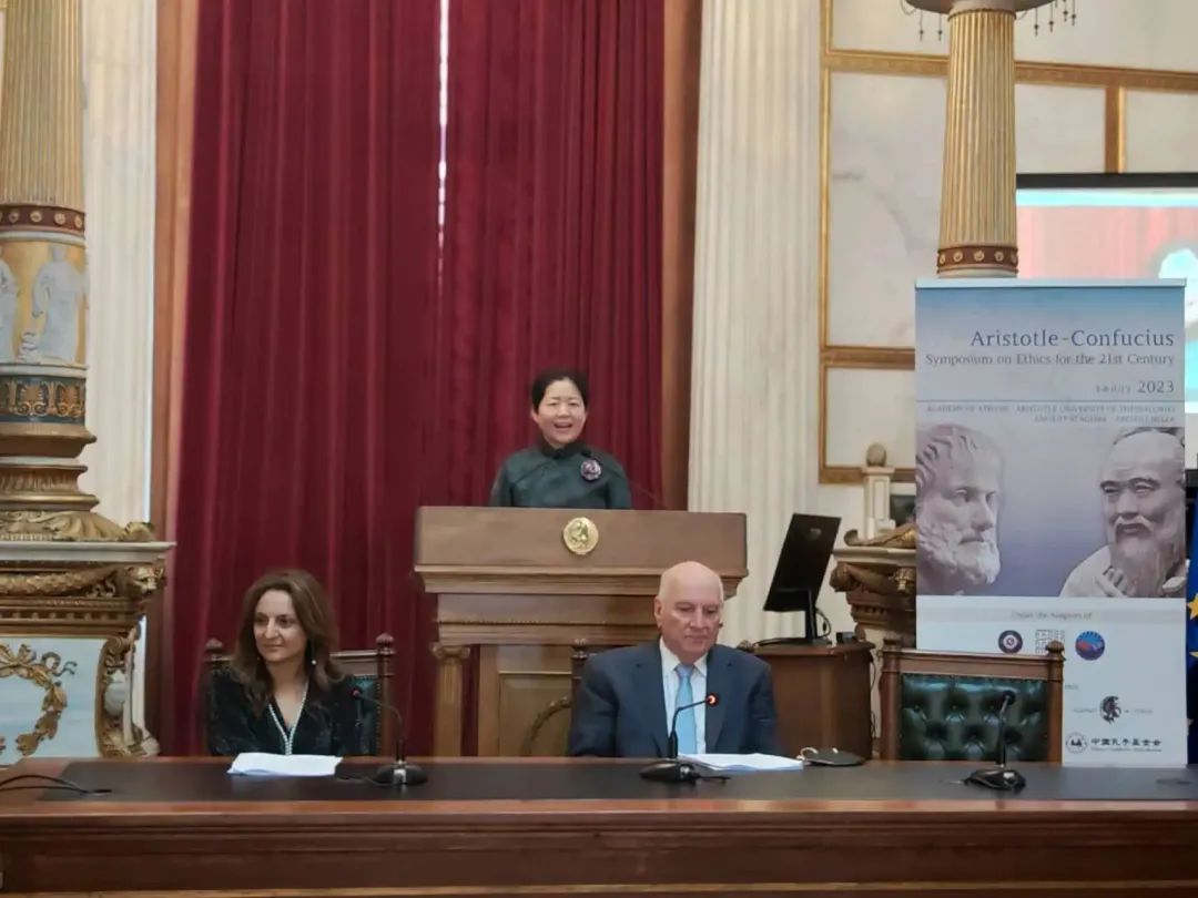 7月3日,由聯合國可持續發展解決方案網絡(SDSN)、中國孔子基金會、雅典科學院、亞里士多德大學亞里士多德跨學科研究中心聯合主辦的孔子—亞里士多德21世紀倫理學術論壇在希臘雅典開幕。匯集來自中國清華大學、北京大學、中國人民大學、武漢大學、香港大學、山東大學、華東師范大學,希臘雅典大學、雅典科學院,美國芝加哥大學、哥倫比亞大學,以及新加坡、柬埔寨等國家和地區的150多位頂尖專家學者。以“借鑒人類古老智慧,破解當代發展困境”為主題,聚焦研討“中國古典哲學和希臘古典哲學能為當今世界做出什么貢獻”。