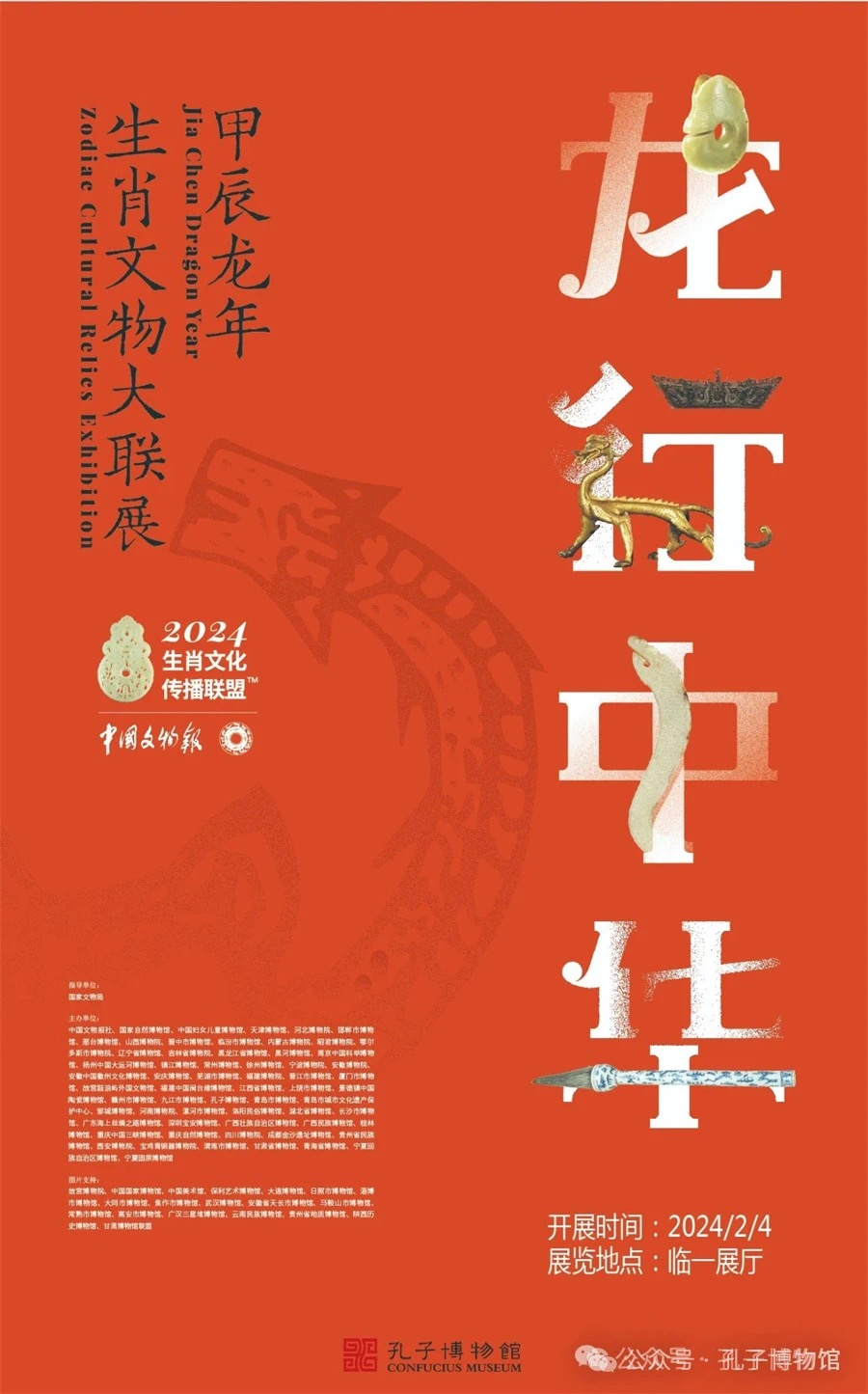 為營造歡樂祥和的春節氛圍,孔子博物館重點推出了“龍行中華——甲辰龍年生肖文物大聯展”“六合同春——孔府過大年文物展”兩大精品展覽。“龍行中華——甲辰龍年生肖文物大聯展”由中國文物報社聯合孔子博物館在內的60余家文博機構共同舉辦,以聯動形式打破博物館邊界,甄選數百幅祥龍題材的文物藝術品映像,用文物語言生動闡釋了中國龍文化的深刻內涵。“六合同春——孔府過大年文物展”匯聚了百余件孔府舊藏文物,以孔府年俗為切入點,讓歷史以鮮活形態展現在觀眾面前。此外,展覽還結合“黃河文化大集”,開展傳統年俗與非遺項目展演體驗活動和豐富多彩的社教活動,不僅讓觀眾感受文化的厚重,也讓年味更加濃郁。