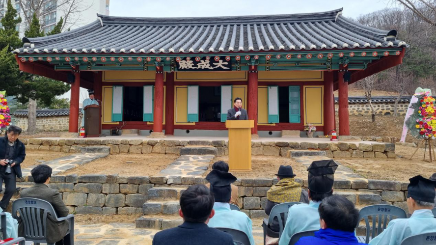 2024年2月24日,韓國孔子文化中心總裁樸洪英一行出席了溫陽鄉校大成殿的重修竣工儀式。與會者包括國會議員李明洙、牙山市市長樸慶貴、牙山市議會議長金熙英等相關人士,以及該地區儒林百余名。值得一提的是,今年已經94歲高齡的成均館元老、溫陽鄉校前任典校、牙山的精神支柱李興馥會長,盡管身體尚未完全康復,但在樸洪英總裁及在場眾人的攙扶下,也出席了此次儀式,為在場來賓以及儒林眾人帶來了感動與鼓舞。