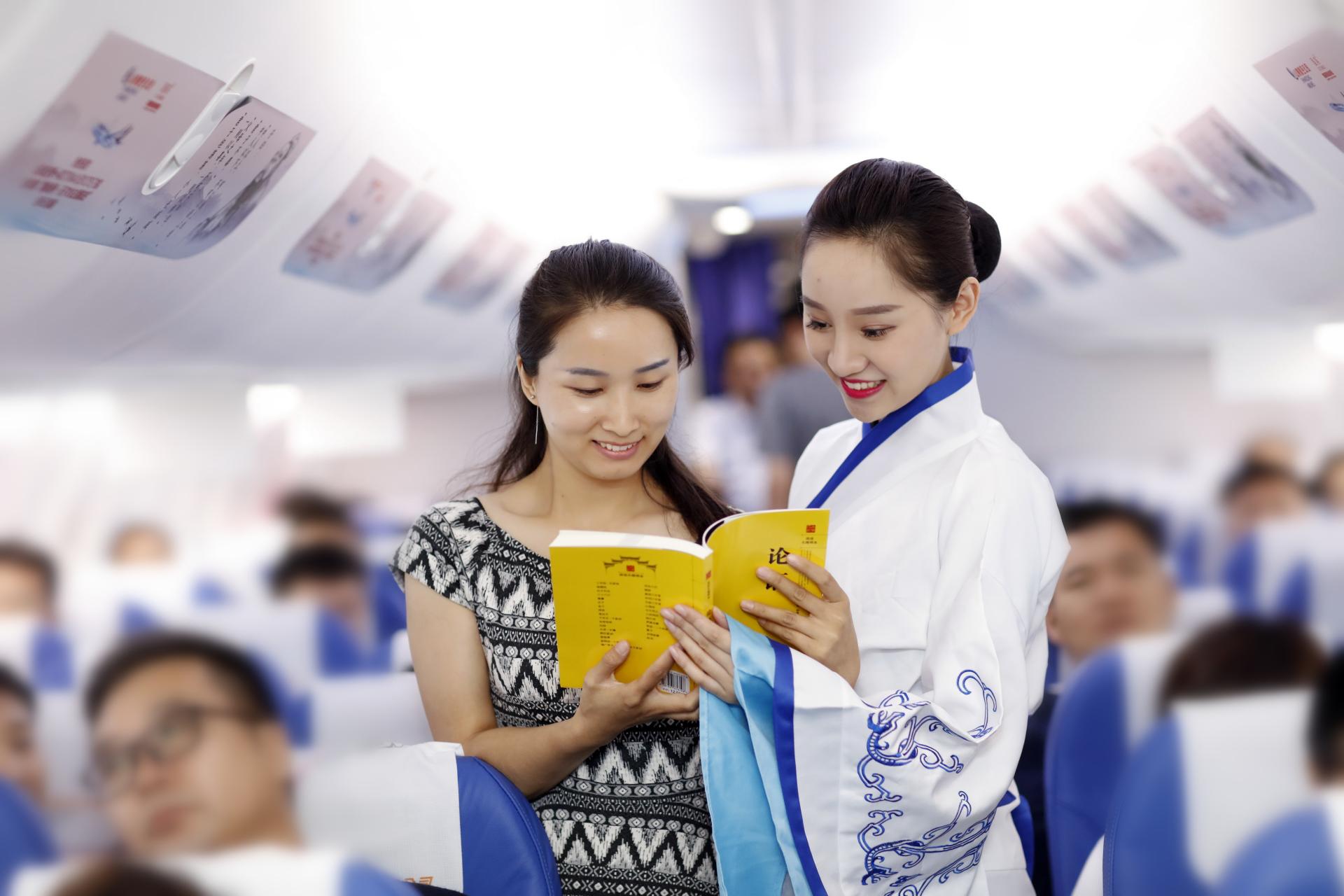 尹文介紹說:“我們客艙服務部開展《論語》的全員誦讀,同時,我們也將《論語》帶到了萬米高空,張貼于機艙內壁,實現了文化宣傳的廣泛性和持久性。同時在航班上播放《空中孔子學堂》視頻節目,讓旅客深刻地體會到國學之美。”