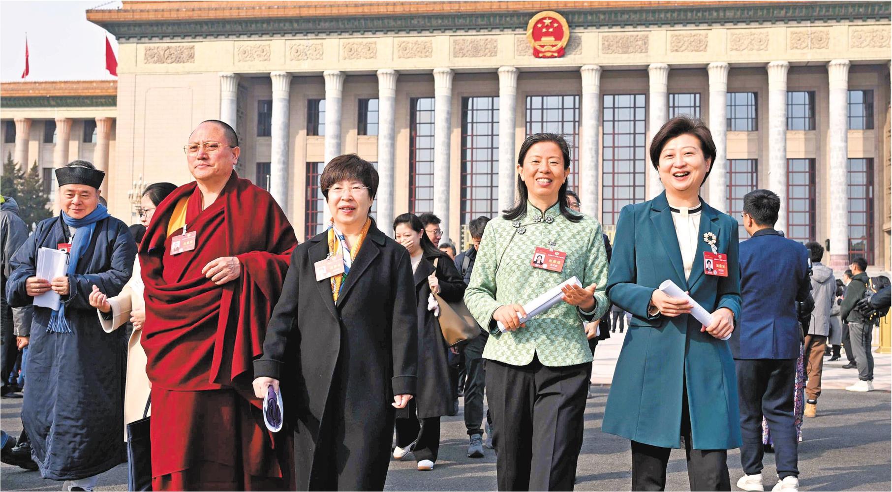 新華社記者李鑫報道 3月10日,中國人民政治協商會議第十四屆全國委員會第二次會議在北京人民大會堂舉行閉幕會。這是閉幕會后,委員們走出人民大會堂。