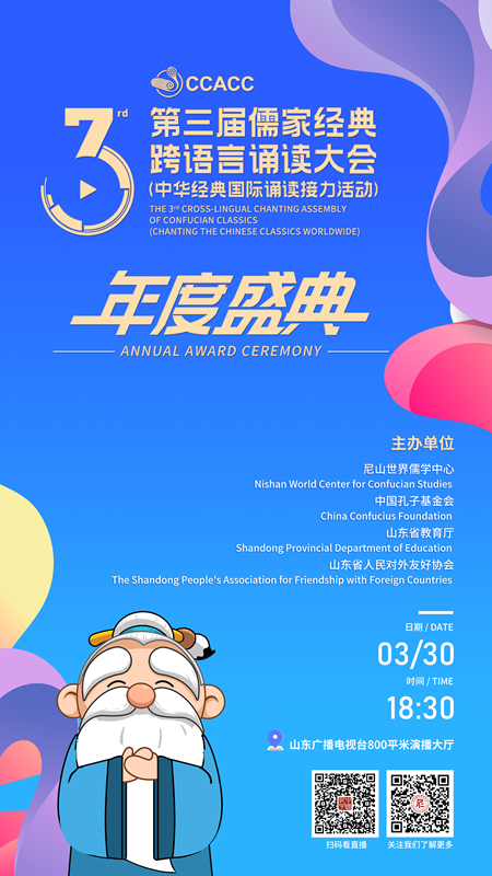 這是第三屆儒家經典跨語言誦讀大會中的一道剪影,在1.2萬件報送作品的背后,是無數指導老師、支持機構的傾情付出。他們在傳統文化領域長期耕耘,有的從事著對外文化宣傳工作,把中國故事講給世界;有的引導學生與經典為伴,將多語言經典誦讀化做日常;有的為留學生打開學習中華文化的窗口,讓他們跨越語言的障礙,感受儒家精神的博大與深邃。