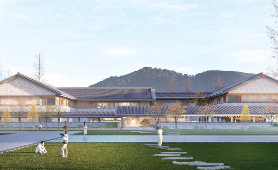 該項目規劃體系源溪流而下,引入水口園林,將規劃整體串聯。以開放式大學規劃格局為界,劃分為三大主體園區,以四大場館為中心,以“大學之道”串聯其中,形成“一水、一軸、三階、四園、四院”的結構。一條景觀水系貫穿場地,拾階而下,建筑布局沿水而生,形成村落肌理。從南側的禮儀入口出發,以泮池園、禮儀門廳、接待廳、杏壇園和圖書館,一個禮儀軸線,串聯“大學之道”。