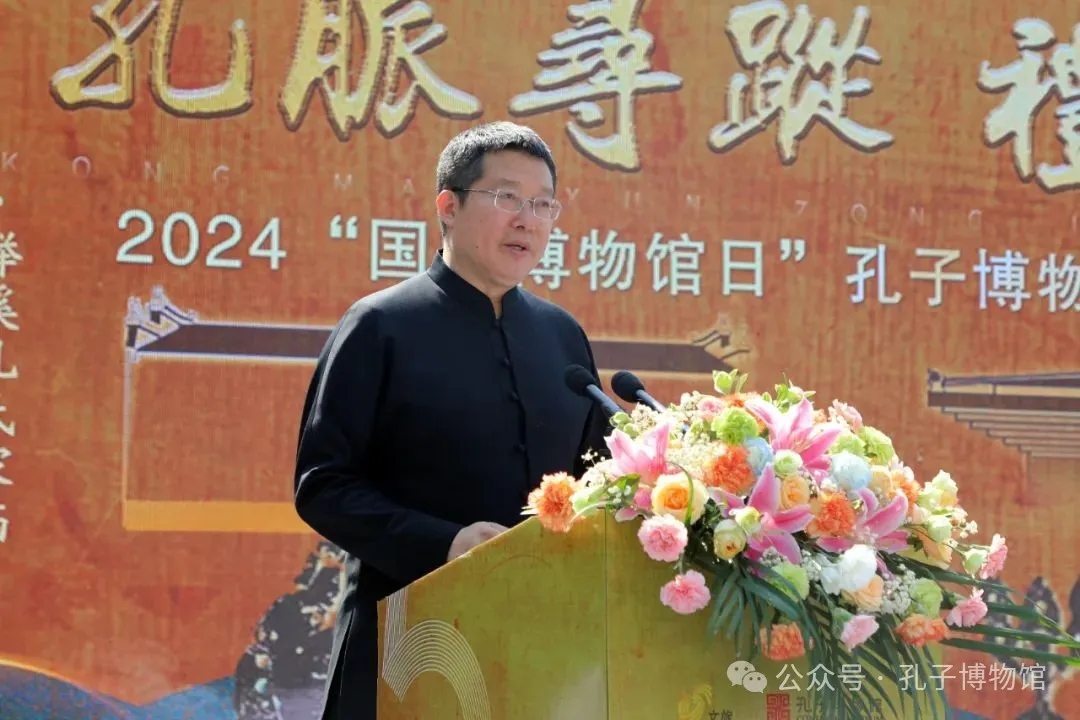 孔子第79代嫡長孫、至圣孔子基金會會長、孔子博物館首席名譽館長孔垂長在致辭中說,櫸溪孔氏家族幾百年來默默傳承,始終堅持詩禮耕讀,走過無數的激流險灘,培養了許多人才,迎來了枝繁葉茂、發展壯大。這種傳承精神是寶貴財富,也是孔氏家族繁衍壯大的密碼。今天是國際博物館日,博物館中的文物要走向大眾,并且在現代生活中活化、利用和展示,讓每個人從珍貴的文物中感受到古老的智慧??鬃硬┪镳^走進櫸溪孔氏家廟之際,也讓櫸溪孔氏與孔氏大宗再一次血脈相連、心靈共振,祝愿櫸溪孔氏家族和睦、繁榮壯大。