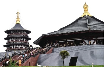 隋唐洛陽城國家考古遺址公園內(nèi)的天堂(左)、明堂。新華社發(fā)