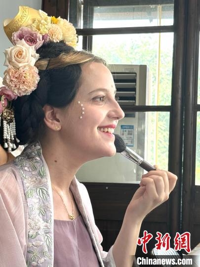 意大利姑娘嘗試漢服妝容。項(xiàng)菁 攝