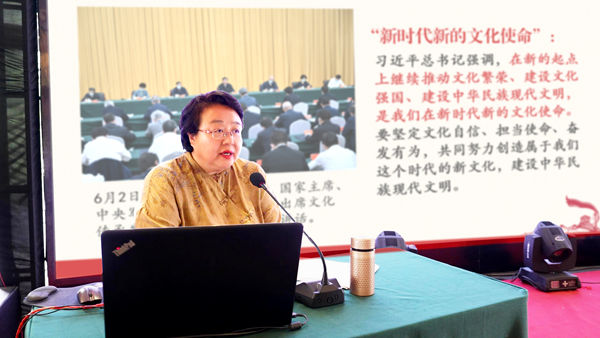 18日下午,周靜以《學習貫徹習近平文化思想 推動孔子學堂高質量發展》為題,給全體學員上了一堂深入淺出的生動黨課。她從習近平文化思想的形成提出、孕育發展以及在社會各界引發的熱烈反響,到什么是孔子學堂、孔子學堂的發展歷程,以及怎樣高質量辦好孔子學堂、打造文化“兩創”新標桿,進行了比較系統地回顧和講解,既有理論的高度,又有實踐的廣度,浸潤著思想的啟迪、價值的引領,贏得現場學員們的陣陣掌聲。山東社會科學院鄉村振興研究院原院長、省委決策咨詢專家周其森,中國政法大學馬克思主義學院副教授、中國孔子基金會孔子學堂主講老師郭繼承,西安長安文化研究會副主席、西安懷德書院院長孫少卿則分別從新時代文明實踐、儒家思想傳播、孔子學堂建設的角度,為大家做了內涵深刻、內容豐富的專題講座。