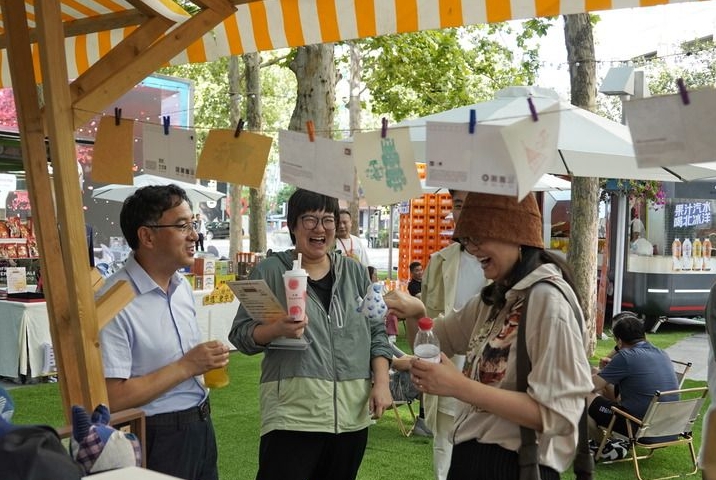 2024年6月17日,由商務部、北京市商務局、朝陽區(qū)八里莊街道等單位共同舉辦的“2024老字號嘉年華·心動老字號”系列消夏活動開幕。圖為人們在消夏集市上休閑購物。新華社記者 李欣 攝