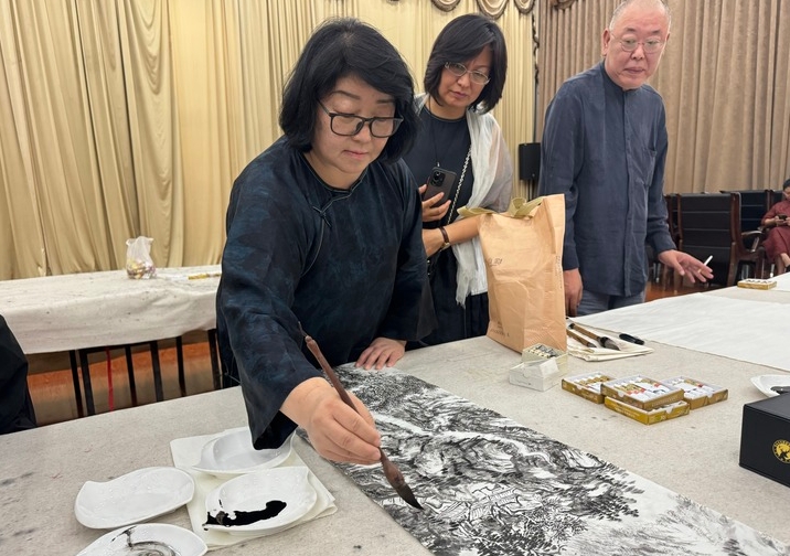 藝博會(huì)現(xiàn)場(chǎng)筆會(huì),書畫家揮毫潑墨。(受訪單位供圖)
