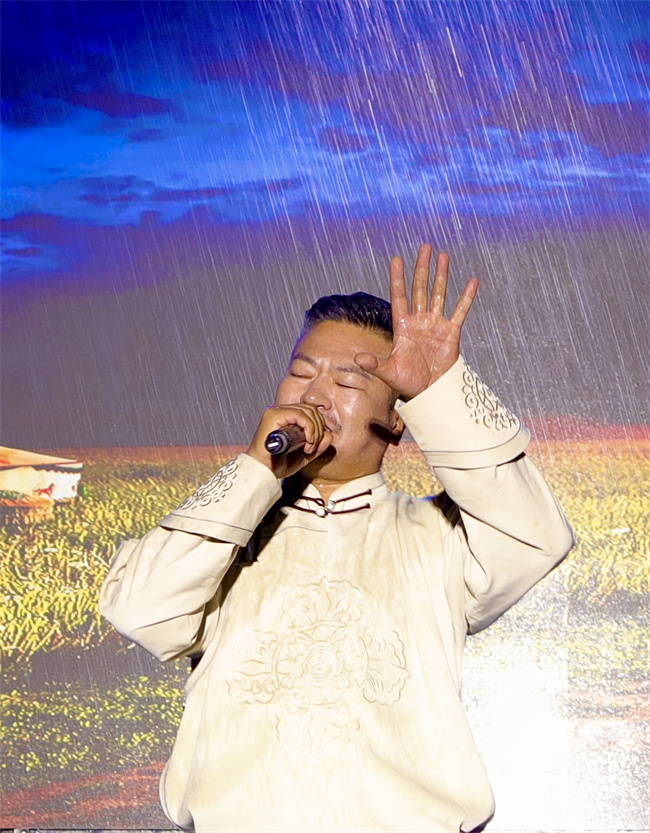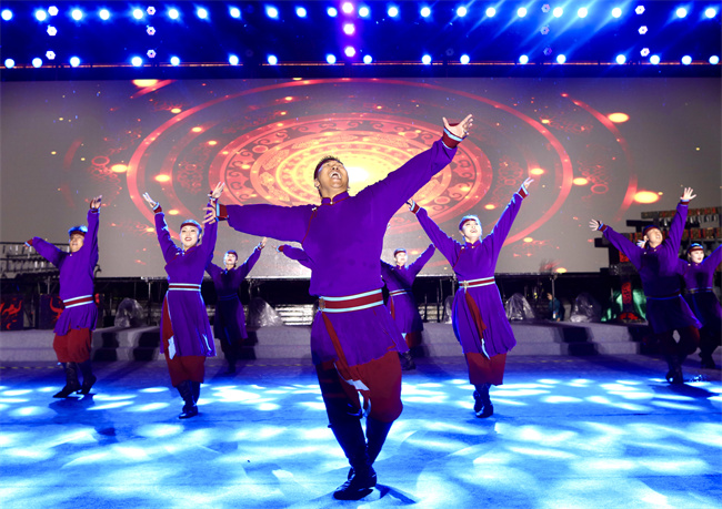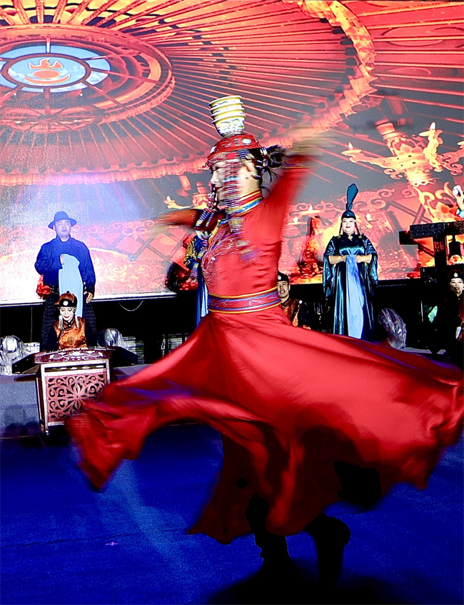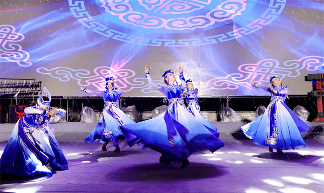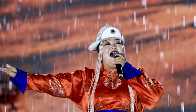 杭錦旗烏蘭牧騎表演歌舞樂《草原的祝福》。