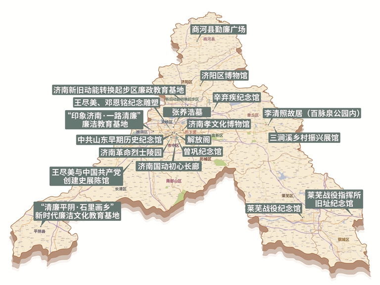 濟南市主要廉潔教育場所分布圖。濟南市紀委監委供圖