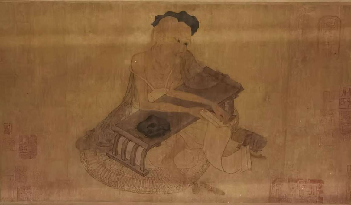 因秦代禁止民間私藏《詩》《書》和百家書籍,伏生冒險將所習《尚書》藏于屋壁之中。漢文帝時,《尚書》瀕臨失傳,朝廷派大臣晁錯向伏生求問。伏生以九十歲高齡口授《尚書》二十八篇,令這一重要儒家經典得以傳承接續。該卷前有南宋高宗題“王維寫濟南伏生”及多位名家題跋,長期以來被認為是王維作品。