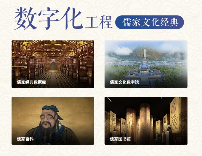 中國孔子基金會于2016年啟動的山東省重點文化項目。完成儒家經典古籍文獻純文本數字化3000余卷,30余萬頁,約5000余萬字,建設完成儒家文化經典數據庫、儒家數字圖書館、儒家文化數字展館等。