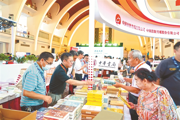 歷經千年留存下來的中華經典,記載了中華文明五千年的發展史和更新史,傳承著中華文明之光。優秀中華經典中凝聚的優秀思想文化,直指心靈教育,提升人生境界,是培養美好品德的重要源泉。圖為2024上海書展上,讀者正在選購中華書局出版的圖書。 劉堃 攝