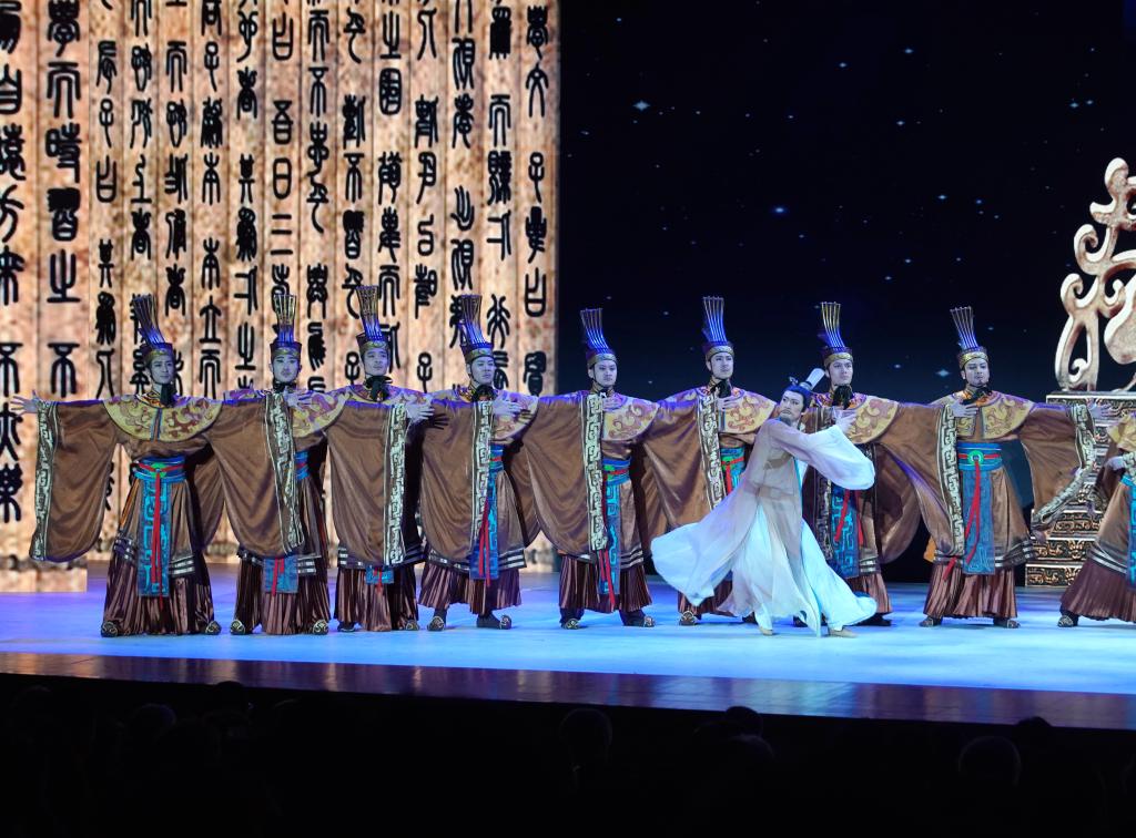 11月6日,演職人員在表演民族舞劇《孔子》片段。當日,首屆世界古典學大會在北京國家博物館舉辦專場文化演出,中國歌劇舞劇院的藝術(shù)家們在舞臺上展現(xiàn)中西藝術(shù)之美。新華社記者 張晨霖 攝