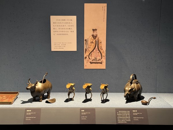 日本江戶時代初期,以儒教治國的第五代將軍德川綱吉建立湯島圣堂,作為講授以孔子為代表的儒學和祭祀孔子的建筑場所,是東京的孔子廟。展覽中,來自東京國立博物館的文幾、料紙、硯箱、爵、象尊、犧尊,都是湯島圣堂舉行祭孔大典時使用的禮器,由當時各地大名進獻。