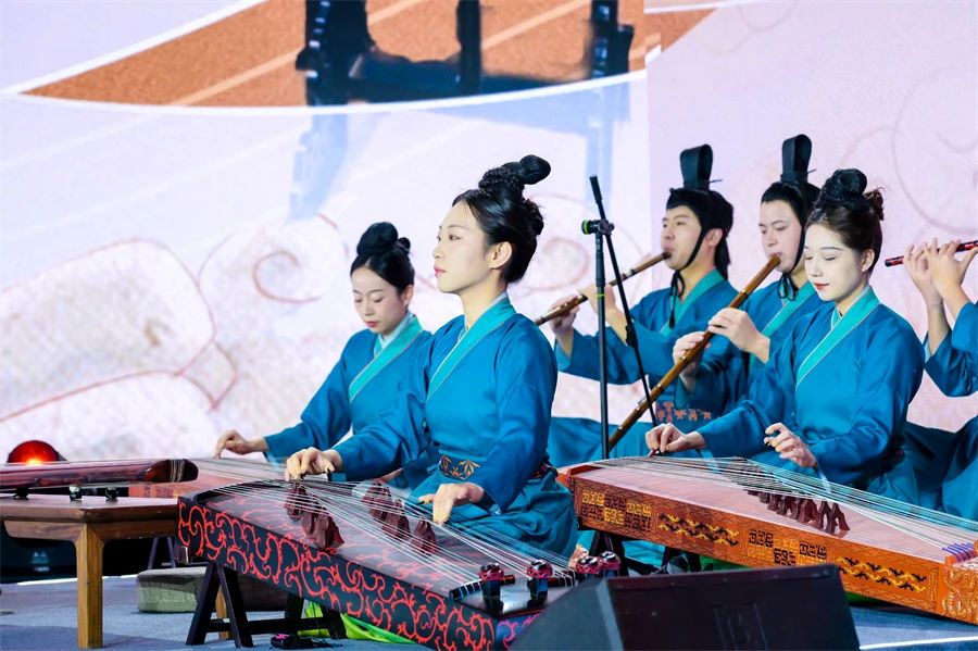 簫韶樂團(tuán)的樂師們身著傳統(tǒng)服飾,奏響八音樂器,為觀眾帶來了《詩經(jīng)·小雅·由儀》《清平樂》等原創(chuàng)雅樂曲目,雅樂旋律古樸,樂聲悠揚(yáng),既威嚴(yán)莊重又不失清新雅致,深刻展現(xiàn)了儒家文化的兼容并蓄,和諧共生的精神內(nèi)涵。簫韶樂團(tuán)與演員張曉龍攜手演繹《弦歌不輟》,更是將活動(dòng)氛圍推向高潮,讓儒家文化在新時(shí)代的舞臺(tái)上煥發(fā)光彩,展現(xiàn)出勃勃的生機(jī)與活力。此次“何以中國·弦歌不輟”網(wǎng)絡(luò)主題宣傳活動(dòng),充分展現(xiàn)了中華民族獨(dú)特的精神氣質(zhì)和鮮明的時(shí)代標(biāo)識(shí)。簫韶樂團(tuán)通過雅樂的演繹,生動(dòng)講述了孔子故事,激發(fā)了年輕一代對傳統(tǒng)文化的濃厚興趣,為中華優(yōu)秀傳統(tǒng)文化的傳承與發(fā)展注入了新的活力。