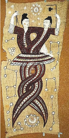 可在古代,人首蛇身卻常常出現(xiàn)在口口相傳的神話中,也時不時呈現(xiàn)在各類繪畫作品里,如伏羲與女媧圖。