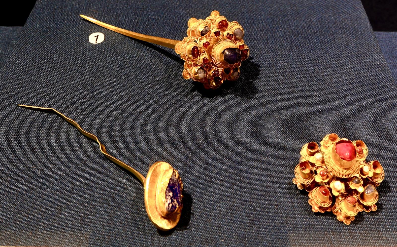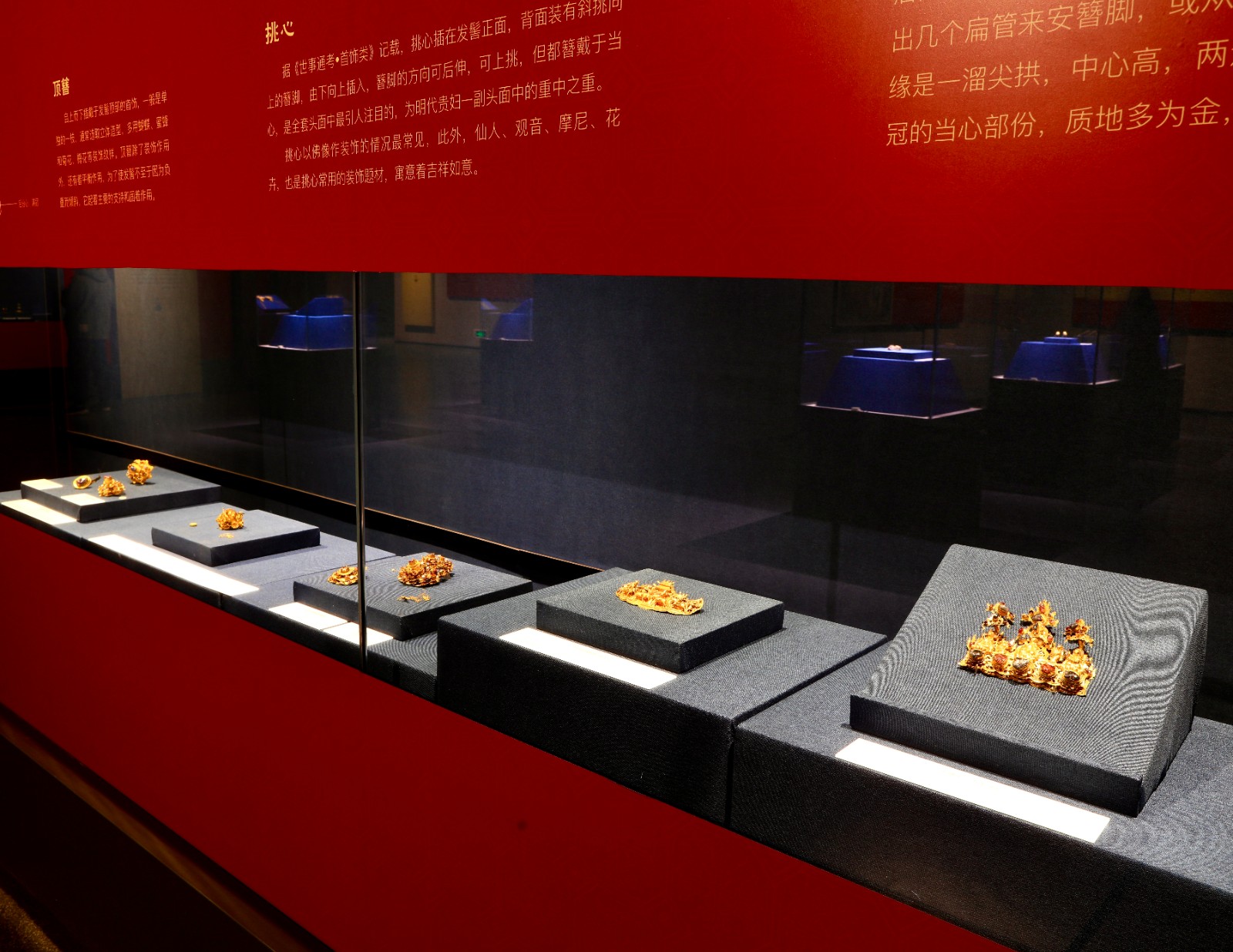 金鑲寶蜂蝶趕菊挑心、“四馬投唐圖”金分心、金鑲寶三大士分心等。