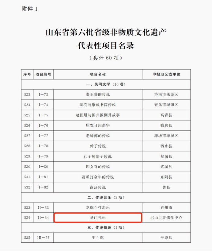 12月19日,山東省人民政府公布了第六批省級非物質文化遺產代表性項目名錄。孔子博物館“圣門禮樂”成功入選,成為尼山世界儒學中心首個省級非物質文化遺產項目!