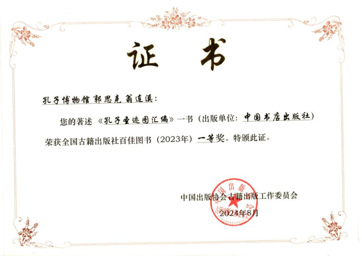 8月29日,中國出版協會古籍出版工作委員會發布2023年度全國古籍出版社百佳圖書,由孔子博物館編纂的《孔子圣跡圖匯編》榮獲一等獎。