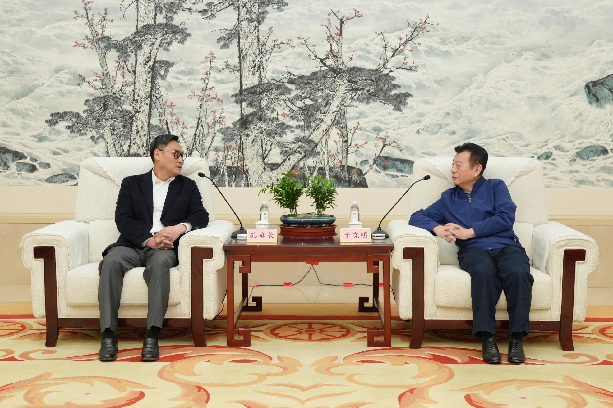 于曉明對(duì)孔垂長(zhǎng)一行的到來(lái)表示熱烈歡迎,高度贊賞深圳至圣孔子基金會(huì)在弘揚(yáng)儒家文化、推動(dòng)文化交流方面所作出的積極貢獻(xiàn)。于曉明指出,孔子是儒家學(xué)派的創(chuàng)始人,其思想對(duì)中國(guó)乃至世界文化產(chǎn)生了深遠(yuǎn)影響。作為孔子故里,山東省委、省政府高度重視中華優(yōu)秀文化的傳承與發(fā)展,深入貫徹落實(shí)習(xí)近平文化思想和習(xí)近平總書記關(guān)于中華優(yōu)秀傳統(tǒng)文化的重要論述,堅(jiān)持“兩個(gè)結(jié)合”,推進(jìn)“第二個(gè)結(jié)合”深化發(fā)展。中國(guó)孔子基金會(huì)肩負(fù)著弘揚(yáng)儒家文化、推動(dòng)學(xué)術(shù)交流的使命任務(wù),積極開(kāi)展學(xué)術(shù)研究、海外文化交流、漢學(xué)家訪學(xué)駐研等活動(dòng),推動(dòng)中華優(yōu)秀傳統(tǒng)文化走向世界。中國(guó)孔子基金會(huì)與深圳至圣孔子基金會(huì)長(zhǎng)期保持密切合作,共同開(kāi)展了兩岸孔子文化春會(huì)、祭孔典禮、成人禮等豐富多彩的文化活動(dòng),推動(dòng)兩岸文化交流與民心相通,為中華文化的傳承與創(chuàng)新注入了新的活力。希望雙方進(jìn)一步加強(qiáng)合作,在儒學(xué)學(xué)術(shù)研究、文化傳播、國(guó)際交流等領(lǐng)域探索更多務(wù)實(shí)舉措,共同為弘揚(yáng)中華優(yōu)秀傳統(tǒng)文化、促進(jìn)世界文明交流互鑒作出更大貢獻(xiàn)。