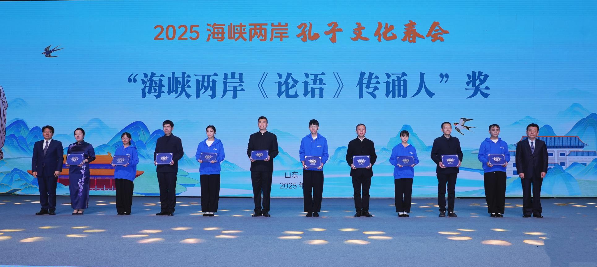 現(xiàn)場(chǎng)舉行了“海峽兩岸《論語(yǔ)》讀寫接力大會(huì)”頒獎(jiǎng)儀式。“海峽兩岸《論語(yǔ)》讀寫接力大會(huì)”由山東省人民政府臺(tái)灣事務(wù)辦公室、尼山世界儒學(xué)中心、中國(guó)孔子基金會(huì)共同舉辦,自2025年2月啟動(dòng),歷時(shí)40余日,共收到誦讀類、書寫類作品2萬(wàn)余件。本次共遴選100幅書法作品在春會(huì)現(xiàn)場(chǎng)展示,充分展現(xiàn)了兩岸書法的藝術(shù)魅力,促進(jìn)了兩岸同胞的情感共鳴與思想碰撞,架起了兩岸文化溝通的橋梁。