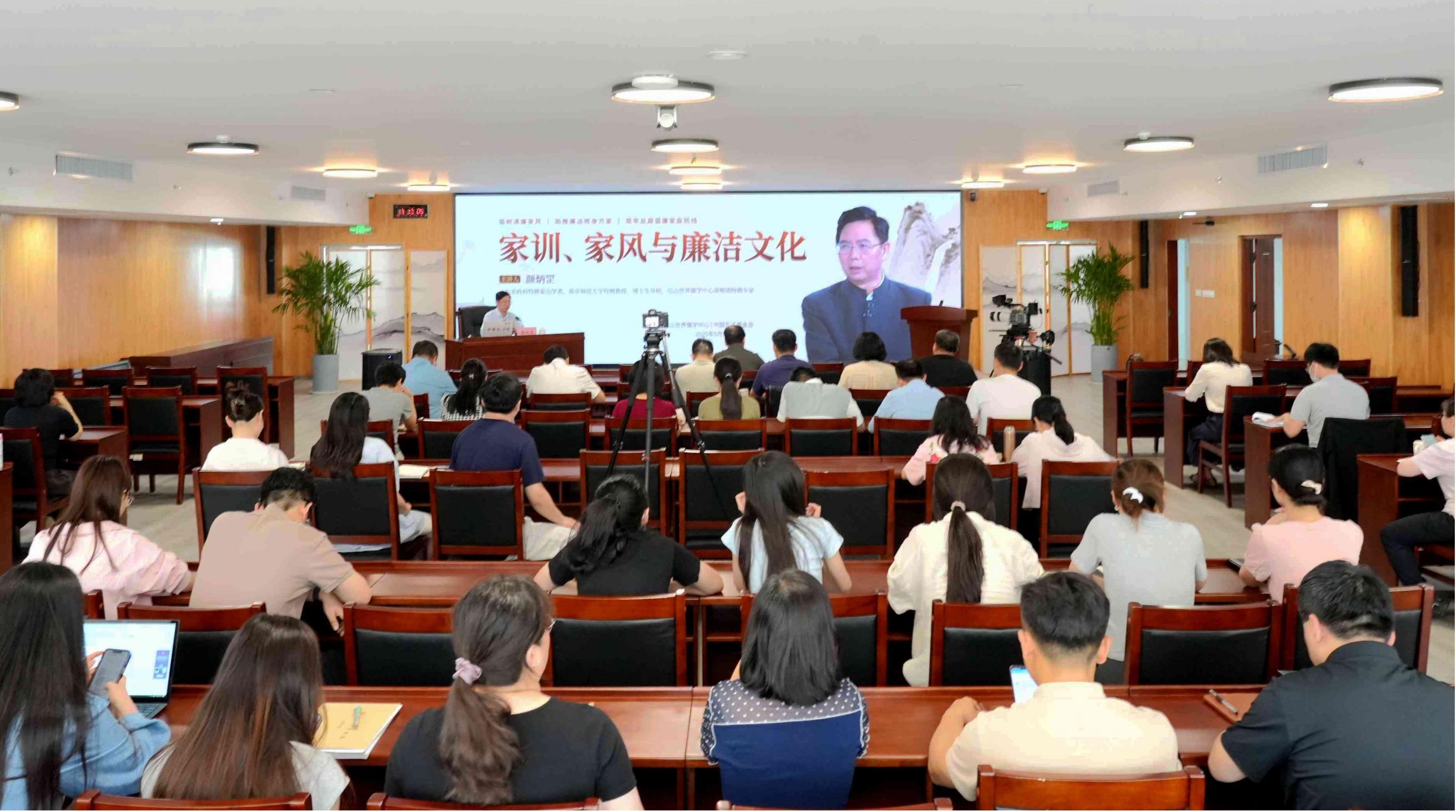 為加強新時代廉潔文化建設,進一步推進清廉機關建設,倡樹清廉家風,筑牢反腐倡廉家庭防線,結合深入貫徹中央八項規定精神學習教育,5月15日下午,在國際家庭日來臨之際,尼山世界儒學中心(中國孔子基金會秘書處)舉辦廉潔家教家風專題講座。山東省文史館館員、曲阜師范大學特聘教授、鄉村儒學研究院院長、山東省政府特聘泰山學者顏炳罡應邀以《家訓、家風與廉潔文化》為題作專題講座。尼山世界儒學中心(中國孔子基金會秘書處)黨委委員、副秘書長米懷勇主持。