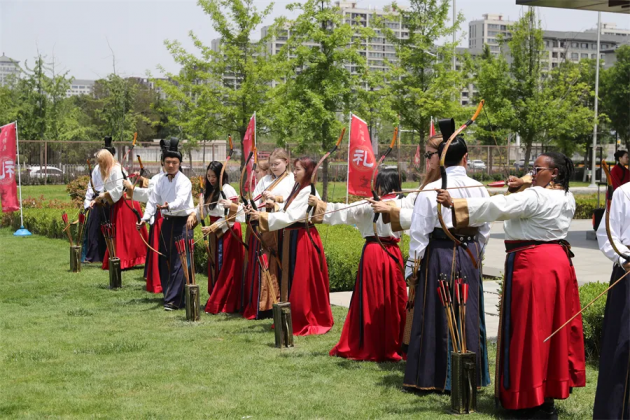 孔子博物館通過場景再現(xiàn)先秦《鄉(xiāng)射禮》儀式,吸引眾多國際留學生參與,共同體驗古代射禮的莊重與典雅?;顒硬粌H是對傳統(tǒng)禮儀文化的傳承和弘揚,也擴大了中國優(yōu)秀傳統(tǒng)文化的國際化傳播和影響力。