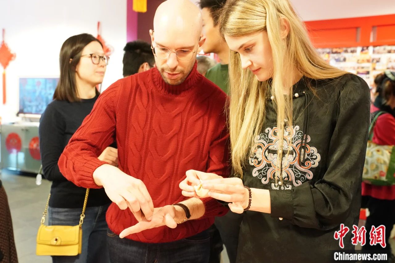 當地時間2025年2月8日,在中國元宵佳節即將來臨之際,柏林中國文化中心舉辦“歡樂春節——走進中心過大年”活動。圖為德國朋友體驗包餃子。 中新社記者 馬秀秀 攝