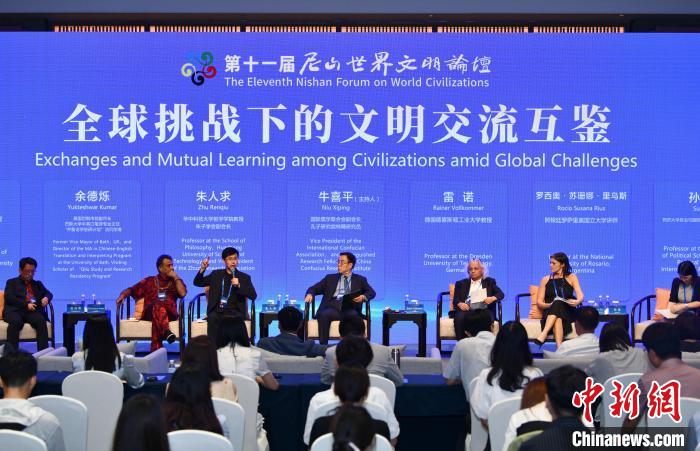 7月10日,第十一屆尼山世界文明論壇水文化論壇在山東曲阜尼山舉行。圖為中外嘉賓同臺交流。沙見龍 攝
