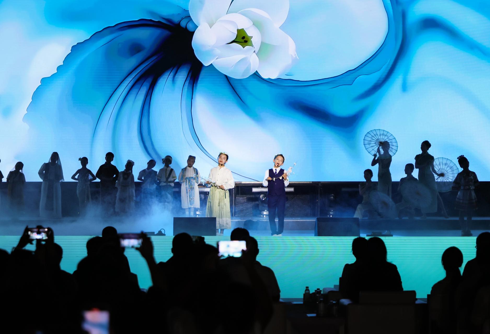 “好一朵美麗的茉莉花,芬芳美麗滿枝椏,又香又白人人夸……”8月5日,第四屆儒家經典跨語言誦讀大會年度盛典在歌舞《茉莉花開 儒溢四海》中驚艷亮相。光影交織中,茉莉花瓣從曲阜大成殿起舞飛向世界各地,將觀眾帶入一個開放包容的世界。
