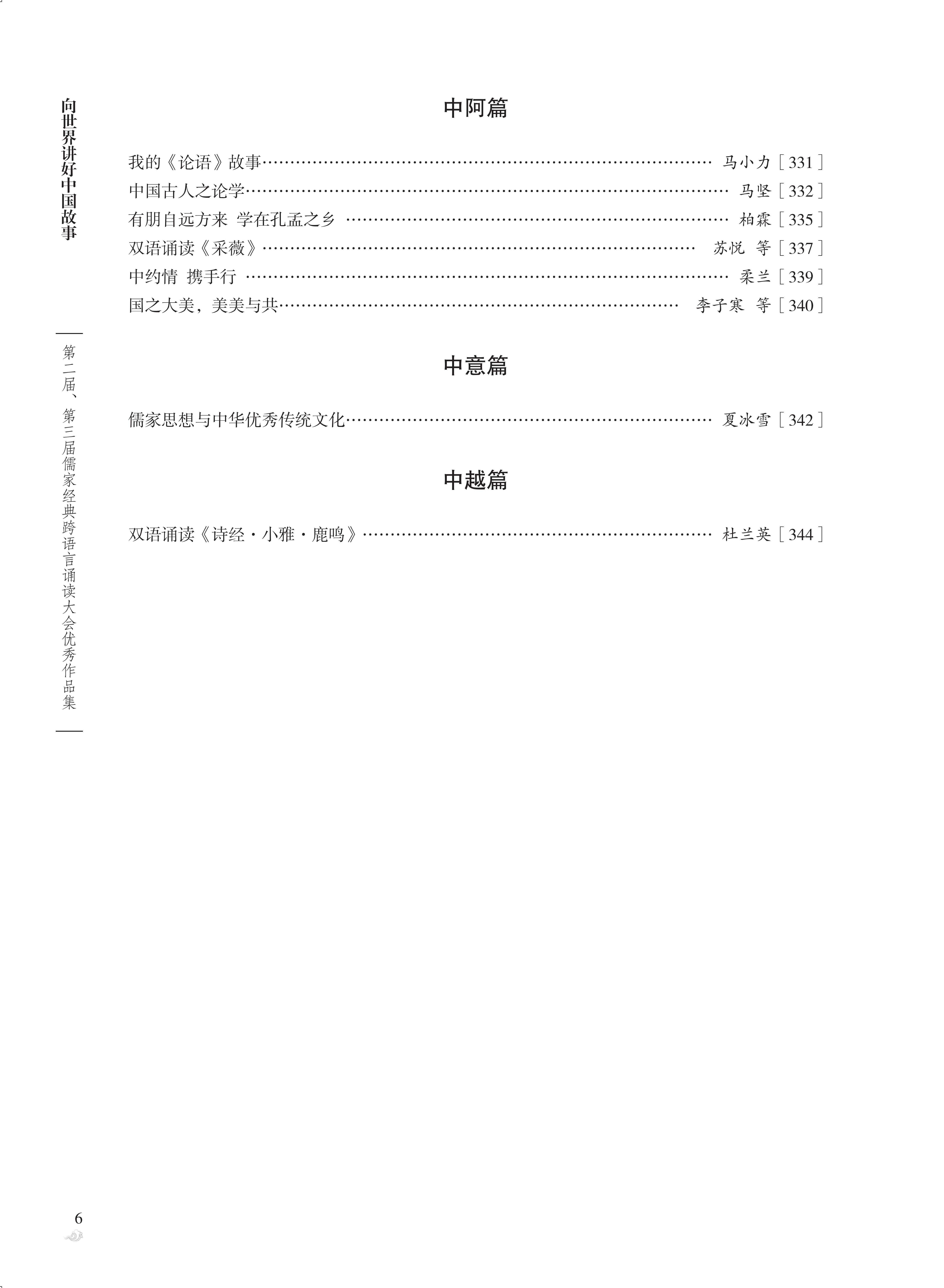 本書收錄了第二屆、第三屆儒家經典跨語言誦讀大會130篇優秀作品。這些作品用中英、中俄、中日、中韓、中德、中法、中葡、中西、中意、中阿、中越11種語言,以文字和視頻的方式深情詮釋和演繹中華經典,本書對作品的文本與視頻二維碼進行了同步收錄。