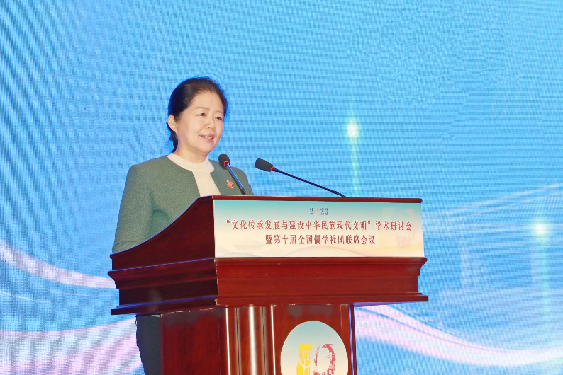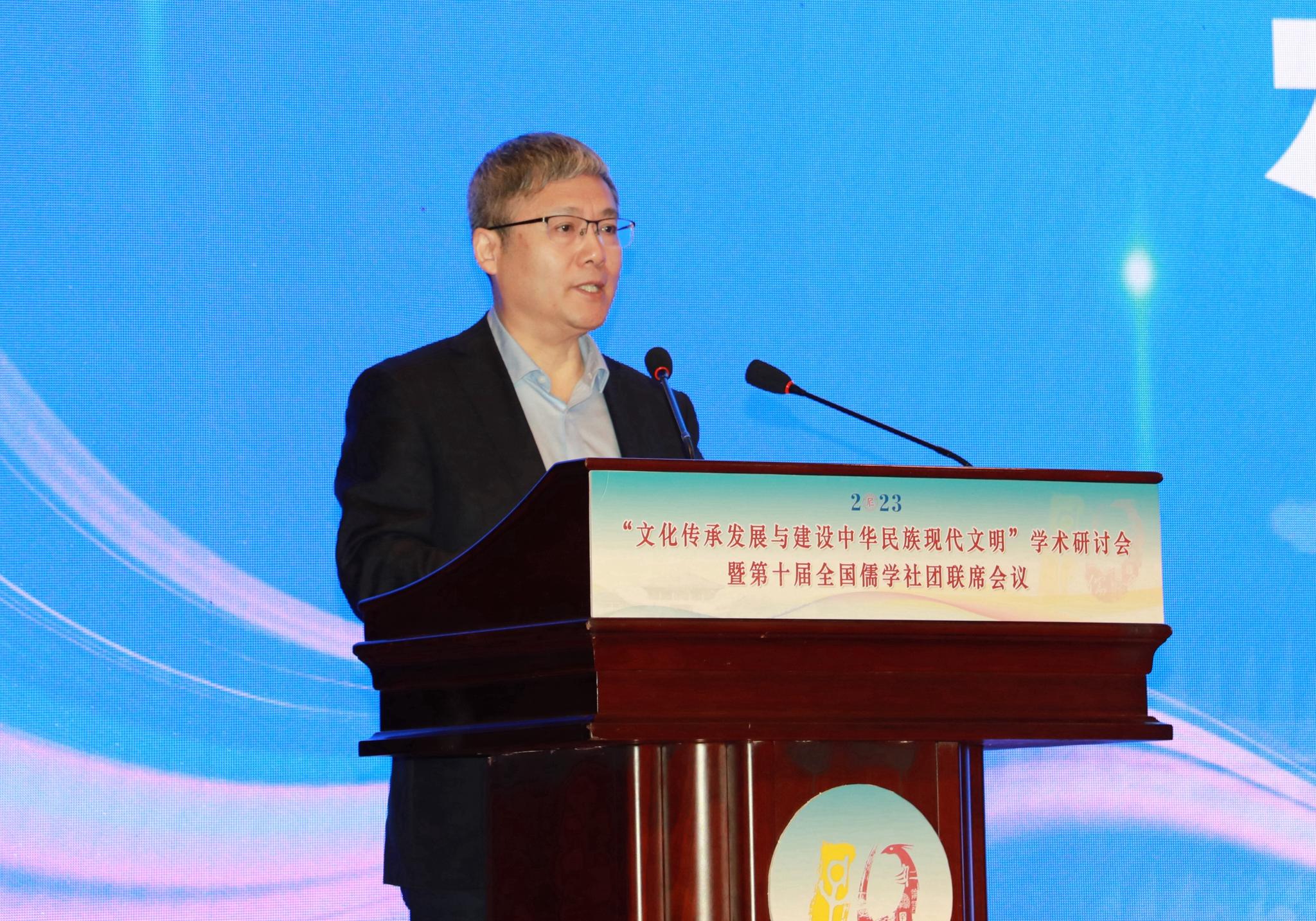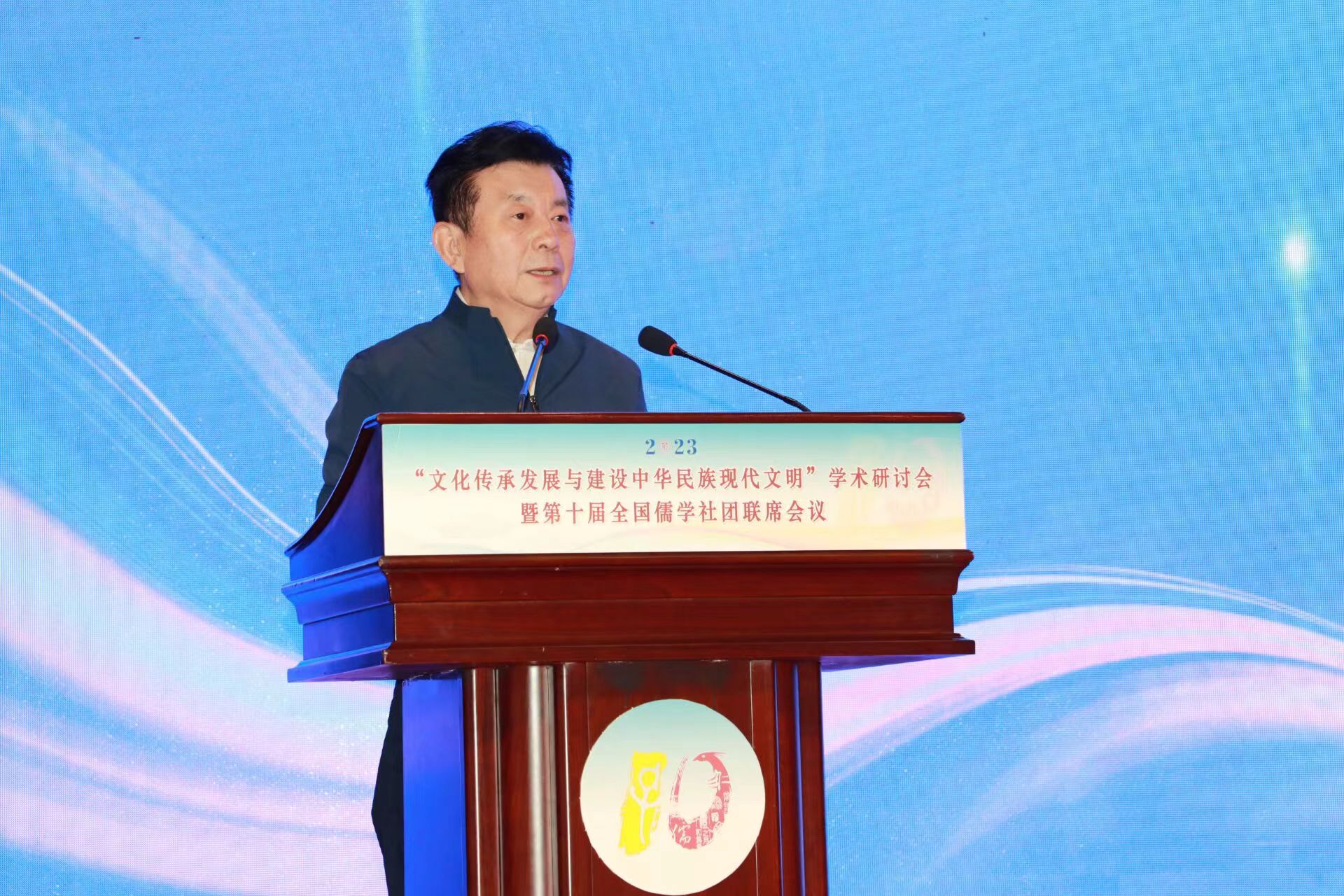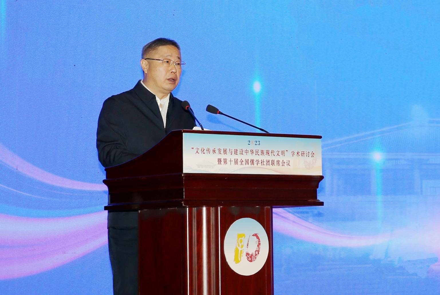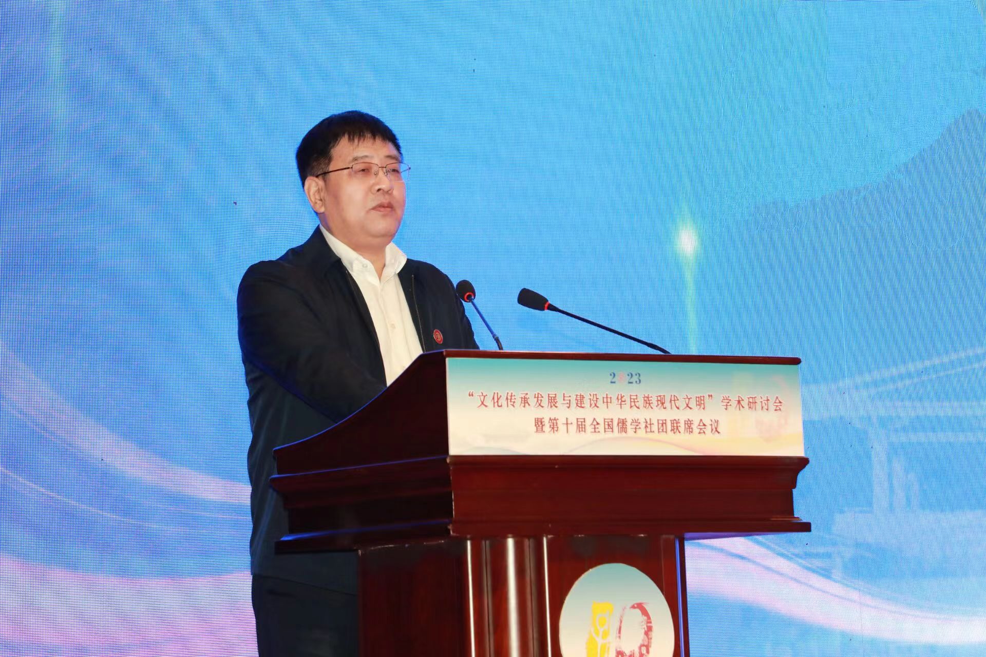 11月24日,“文化傳承發(fā)展與建設(shè)中華民族現(xiàn)代文明”學(xué)術(shù)研討會暨第十屆全國儒學(xué)社團(tuán)聯(lián)席會議在孔子研究院召開。山東省人大常委會原黨組書記、副主任,中國孔子基金會理事長于曉明,山東省委宣傳部副部長張同海,全國儒學(xué)社團(tuán)聯(lián)席會議秘書長、中共中央黨校哲學(xué)部教授、尼山世界儒學(xué)中心理事王杰,濟(jì)寧市委常委、政法委書記張國洲出席會議并致辭。尼山世界儒學(xué)中心(中國孔子基金會秘書處)黨委書記、副主任,中國孔子基金會副理事長、秘書長國承彥主持開幕式。
