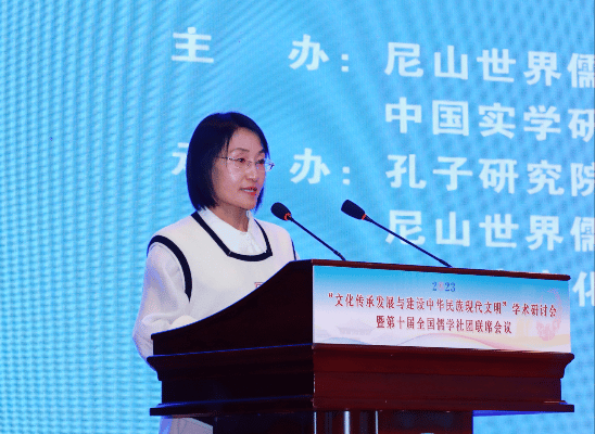 國承彥代表主辦方向來自全國各地的嘉賓表示歡迎,對長期以來給予尼山世界儒學(xué)中心、中國孔子基金會的關(guān)心支持表示感謝。她表示,十年前,習(xí)近平總書記在孔子研究院向全社會發(fā)出大力弘揚(yáng)中華優(yōu)秀傳統(tǒng)文化的號召。同年,全國首屆省級以上儒學(xué)團(tuán)體負(fù)責(zé)人聯(lián)席會議在杭州成功舉辦。十年來,在習(xí)近平總書記號召的鼓舞下,全國儒學(xué)社團(tuán)自覺以習(xí)近平新時(shí)代中國特色社會主義思想為指導(dǎo),致力于推動社會主義核心價(jià)值體系與中華優(yōu)秀傳統(tǒng)文化相融合,為實(shí)現(xiàn)文化“兩創(chuàng)”、落實(shí)“兩個(gè)結(jié)合”做出積極實(shí)踐探索。傳承和發(fā)展以儒學(xué)為代表的中華優(yōu)秀傳統(tǒng)文化使命光榮、責(zé)任重大。儒學(xué)中心、孔子基金會將與廣大文化工作者一道,更加緊密地團(tuán)結(jié)在以習(xí)近平同志為核心的黨中央周圍,深入貫徹落實(shí)習(xí)近平文化思想,以實(shí)際行動扛牢文化傳承發(fā)展的時(shí)代重任,攜手推動建設(shè)中華民族現(xiàn)代文明。