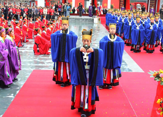 祭孔禮儀或稱祭孔奠禮。它的專用名稱叫做“釋奠禮”。釋、奠均為陳設(shè)、呈獻(xiàn)之意,指的是在祭典中,陳設(shè)音樂(lè)、舞蹈,以及呈獻(xiàn)牲(三牢)酒、果、蔬菜等祭品,以表對(duì)孔子的尊崇。祭孔禮儀分為:迎神、初獻(xiàn)、亞獻(xiàn)、終獻(xiàn)、撤撰、送神等六部分。