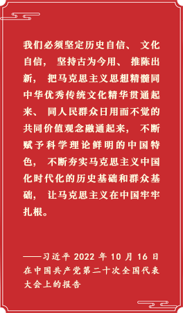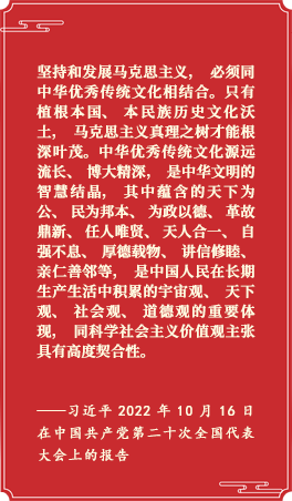 黨的二十大報告指出,“把馬克思主義思想精髓同中華優秀傳統文化精華貫通起來”,“堅持創造性轉化、創新性發展”,“深化文明交流互鑒,推動中華文化更好走向世界”。 [詳細]