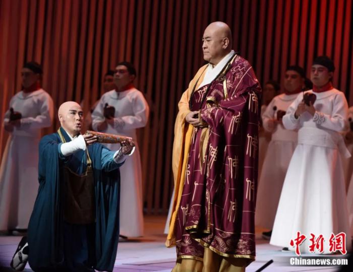 “以西方歌劇藝術(shù)形式講述東方流傳千年史詩”的《鑒真東渡》亮相美國加州洛杉磯帕薩迪納市政禮堂。 張朔 攝